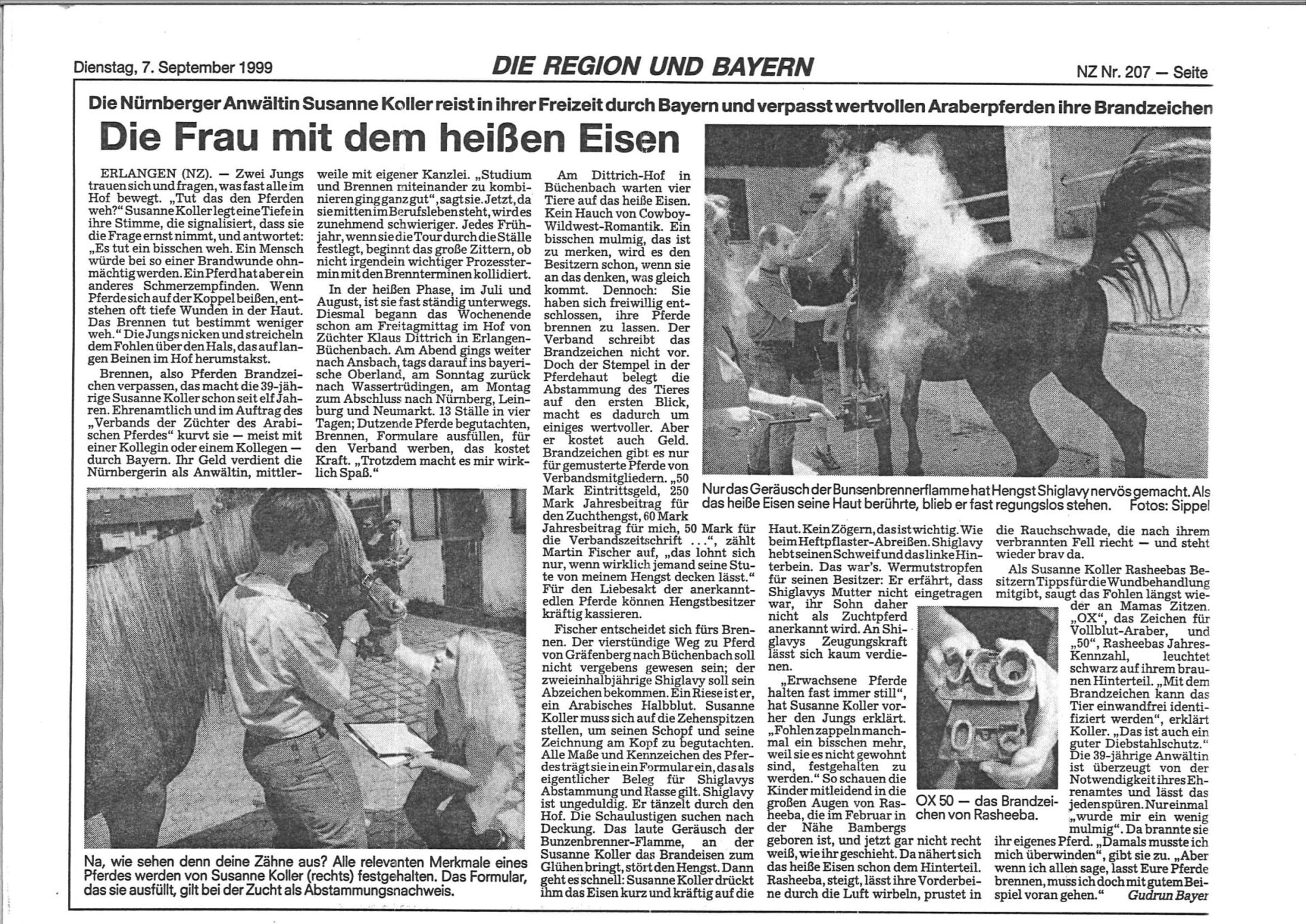 Mit fast 30 Jahren Erfahrung als regionale Zucht- und Brennbeauftragte, langjährige Zuchtbezirksvorsitzende in Bayern und nach über 20 Jahren als Vorstandsmitglied des Verbandes der Züchter und Freunde des arabischen Pferdes e.V. (VZAP) profitieren Sie auch von Kontakten zu anderen Zuchtverbänden und anderen Organisationen.