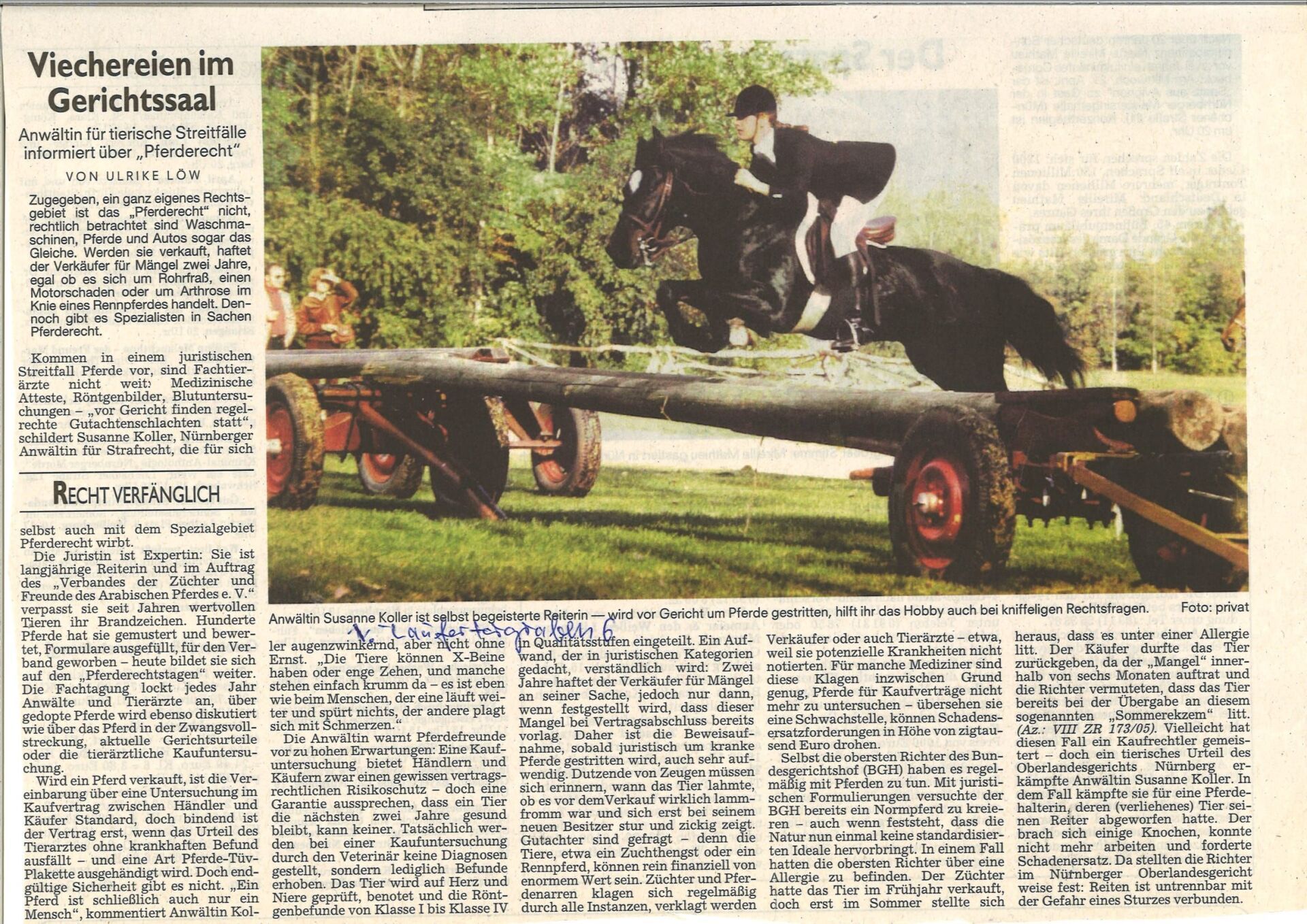 Im Gesetz finden Sie das Pferderecht nicht. Auch studieren kann man es nicht. Wenn Sie allerdings bereits einmal mit einem Laien über Koppeln, Vernageln oder Rehe gesprochen haben, werden Sie sich mit juristischen Fragen sicher lieber an einen Pferdemenschen wenden. Denn seine Erfahrung kann im Zweifelsfall darüber entscheiden, ob Sie sich im Recht glauben oder Recht bekommen.